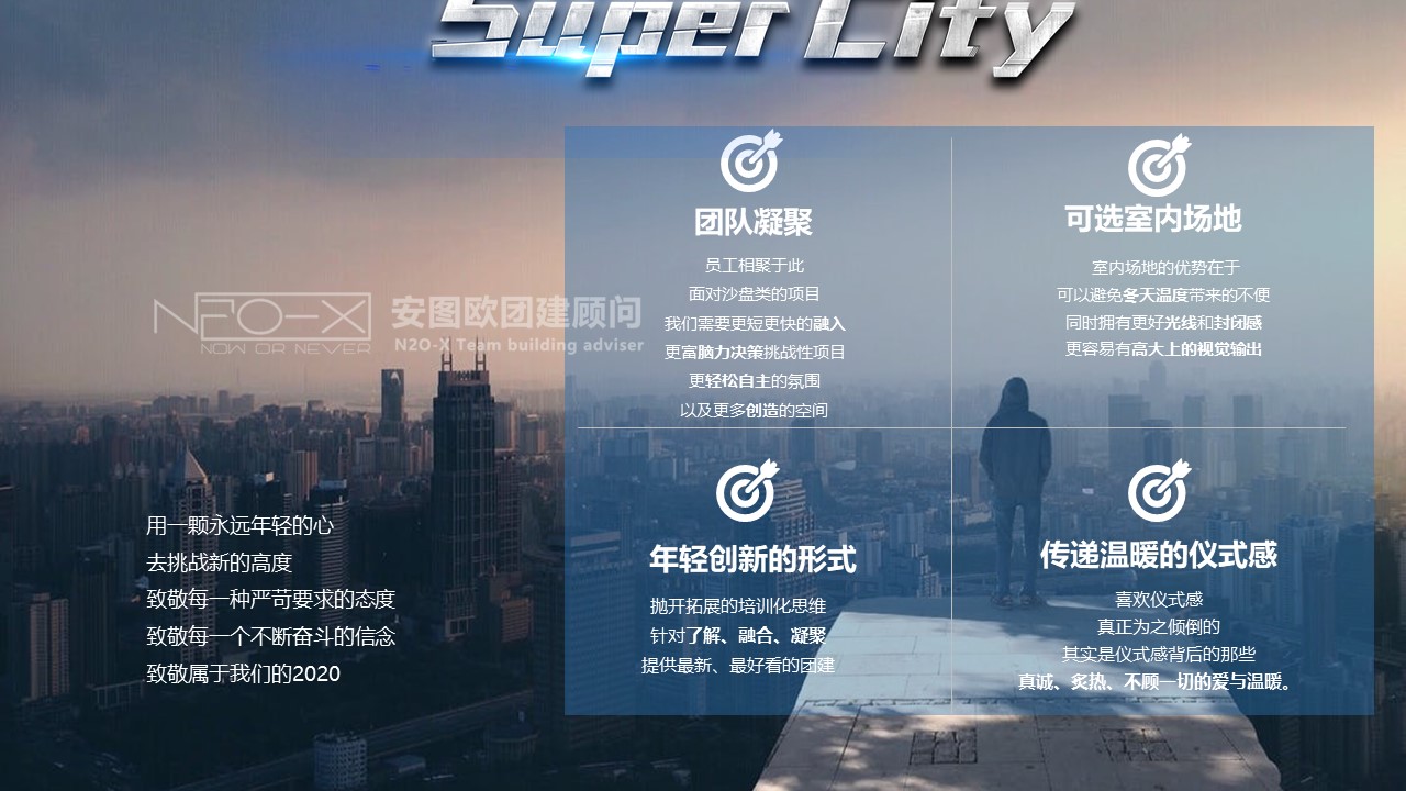 安圖歐團(tuán)建主營:公司團(tuán)建活動策劃、企業(yè)拓展培訓(xùn)、廣州拓展訓(xùn)練、廣州拓展培訓(xùn)、企業(yè)年會活動策劃、趣味運(yùn)動會、企業(yè)家庭日、新員工培訓(xùn)、黨建活動策劃等各類主題團(tuán)建活動。