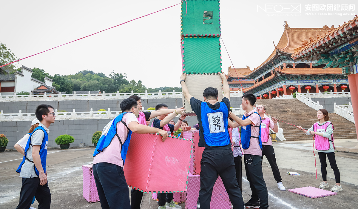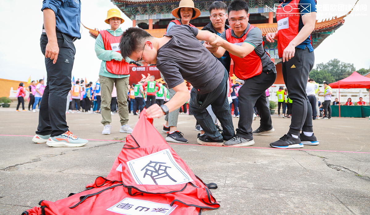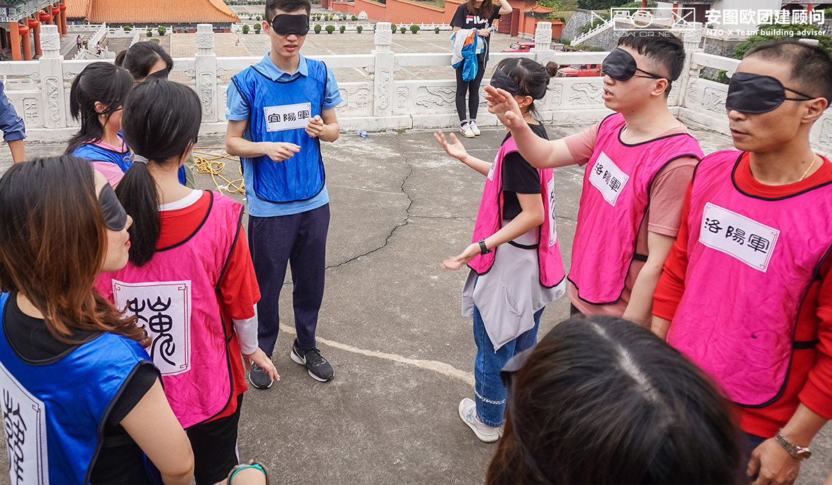 興建阿房宮:參賽隊(duì)員在蒙住眼睛的情況下,通過繩子來搭建一個(gè)簡易房子。這很考驗(yàn)參賽隊(duì)員的默契和溝通方式,一項(xiàng)智力與勇氣的配合。