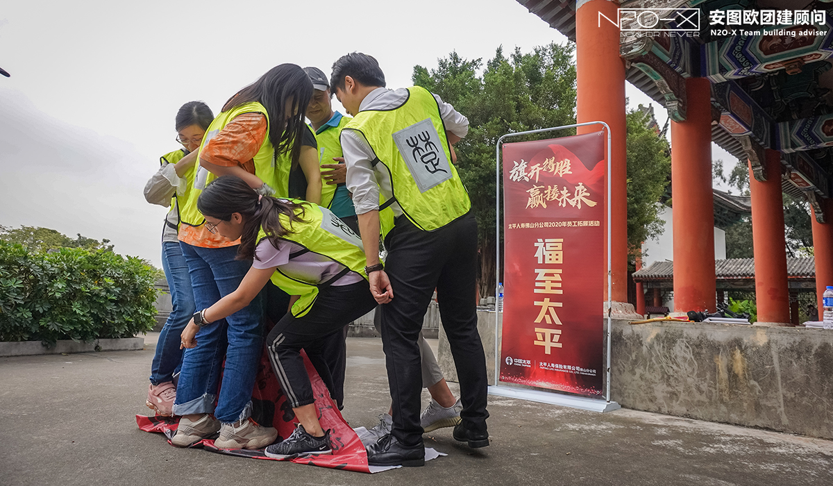翻葉子任務(wù)點(diǎn),所有成員站在福至太平的燈布上面,在不借助外力的情況下,將燈布翻轉(zhuǎn)到福至太平的燈布正面,即完成任務(wù)。