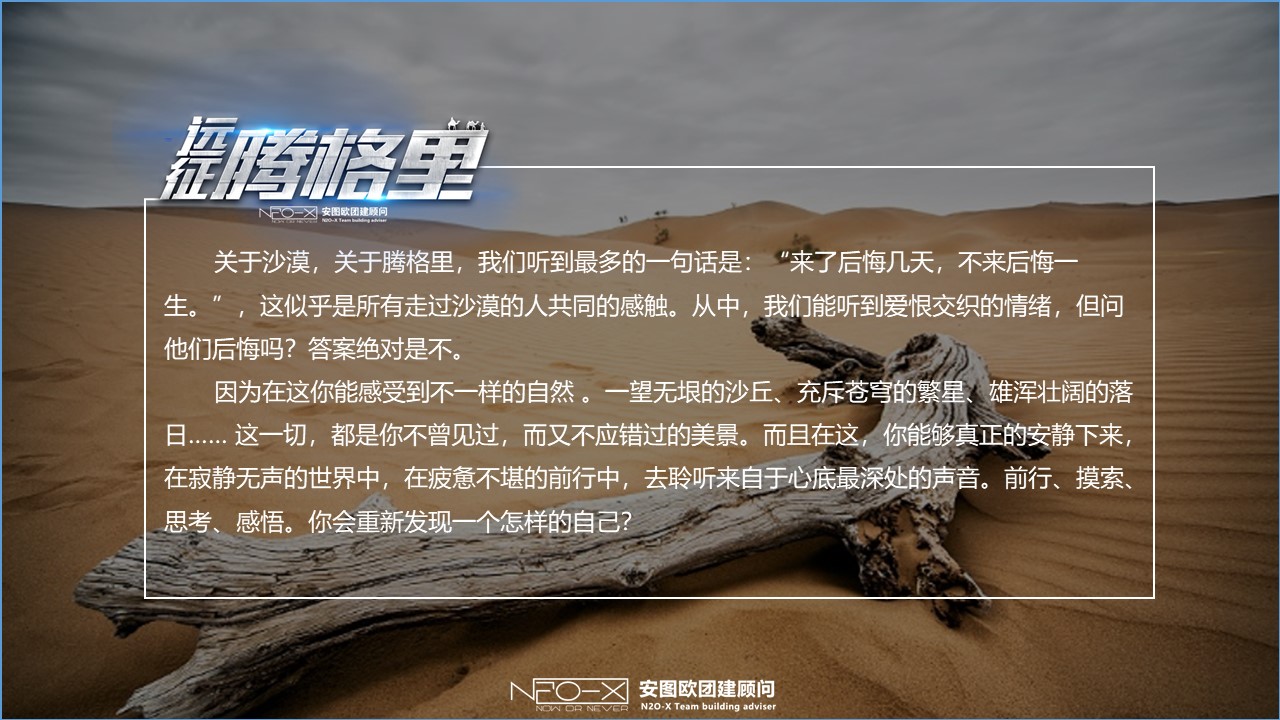 3、協(xié)作力提升,完成沙漠拓展任務,提升凝聚力,讓團隊更強大;