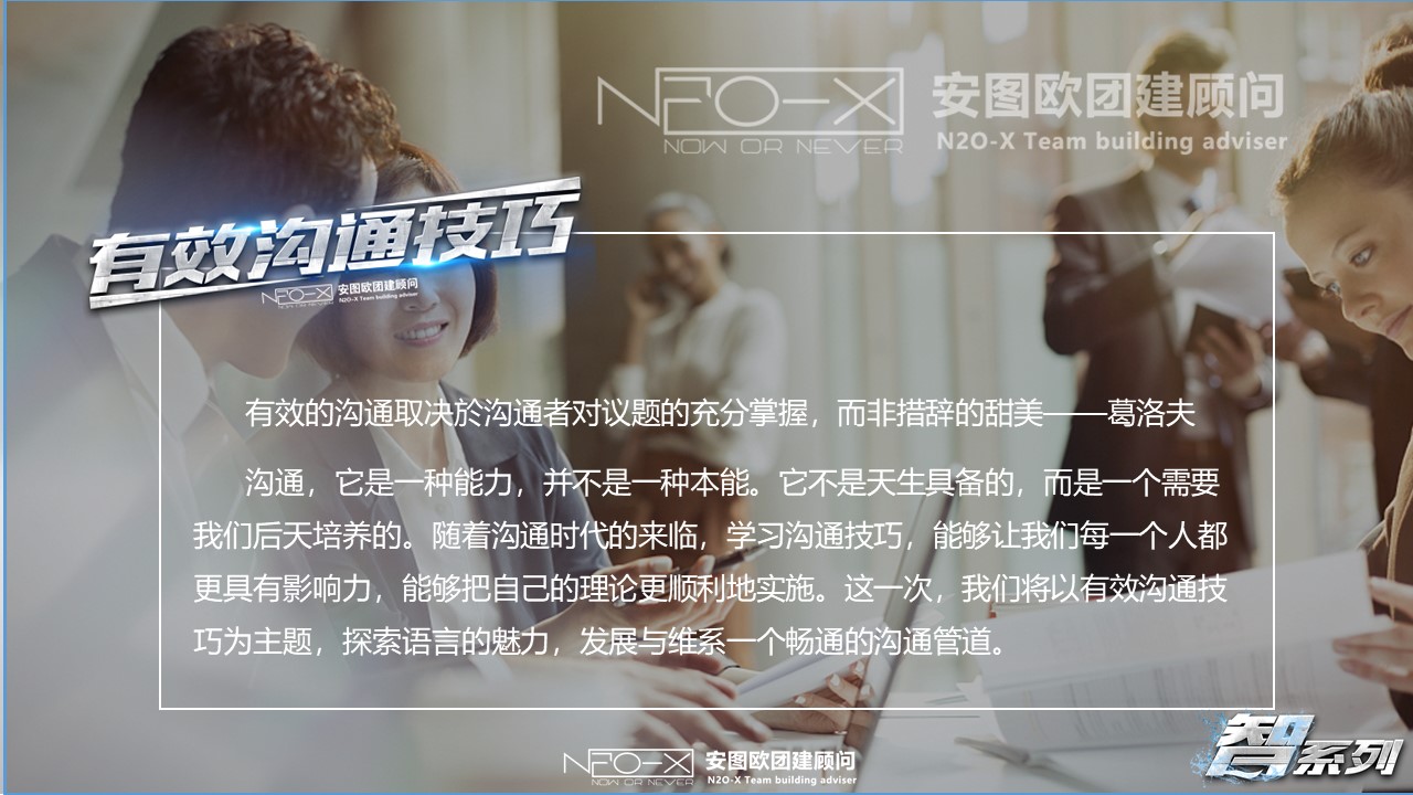 溝通,它是一種能力,并不是一種本能。它不是天生具備的,而是一個(gè)需要我們后天培養(yǎng)的。隨著溝通時(shí)代的來(lái)臨,學(xué)習(xí)溝通技巧,能夠讓我們每一個(gè)人都更具有影響力,能夠把自己的理論更順利地實(shí)施。這一次,我們將以有效溝通技巧為主題,探索語(yǔ)言的魅力,發(fā)展與維系一個(gè)暢通的溝通管道。